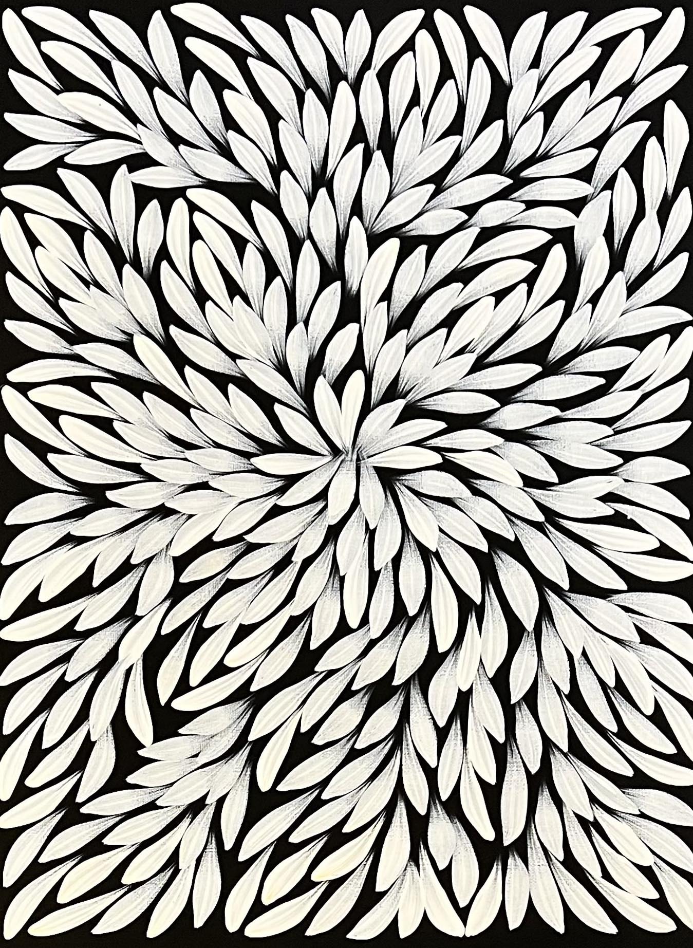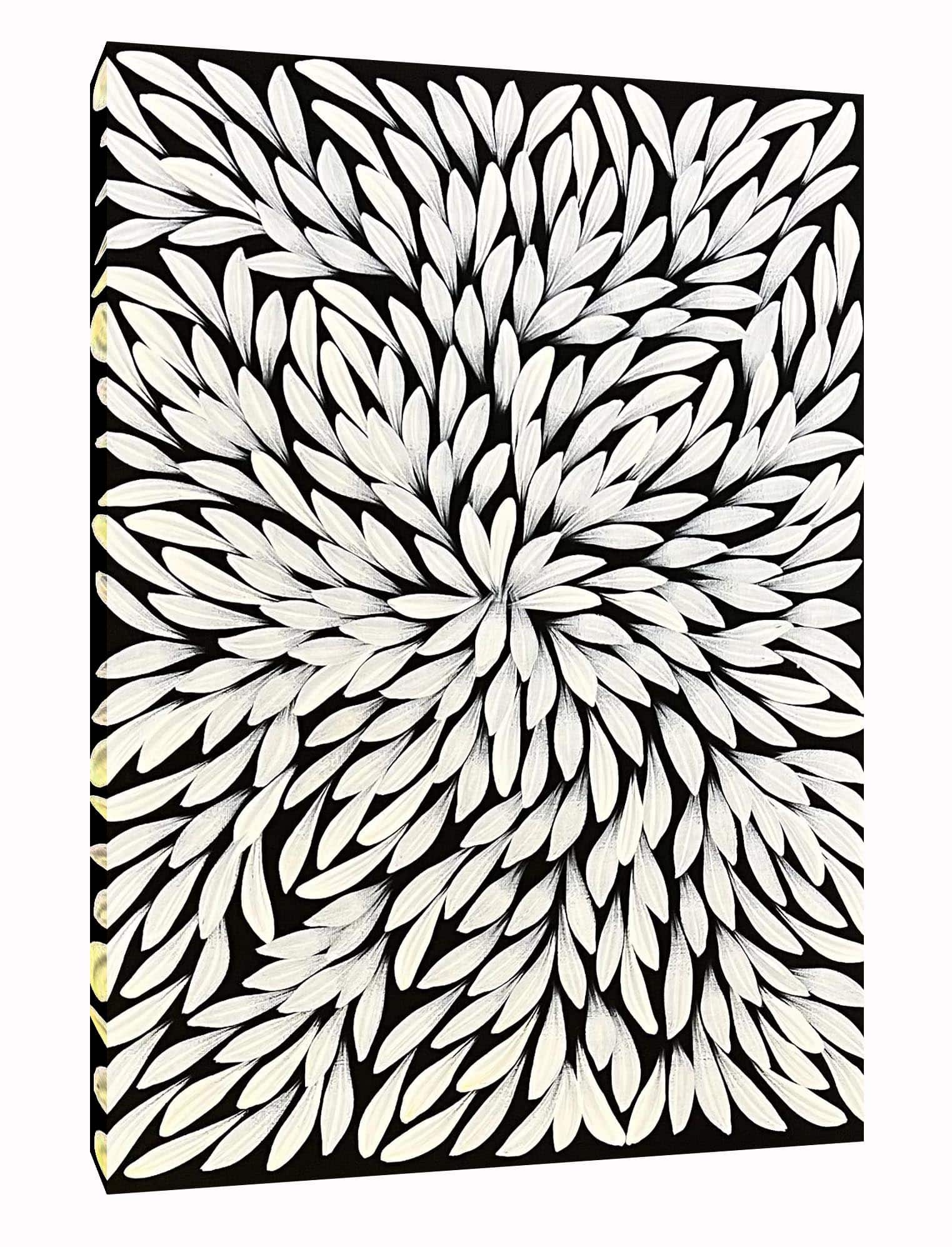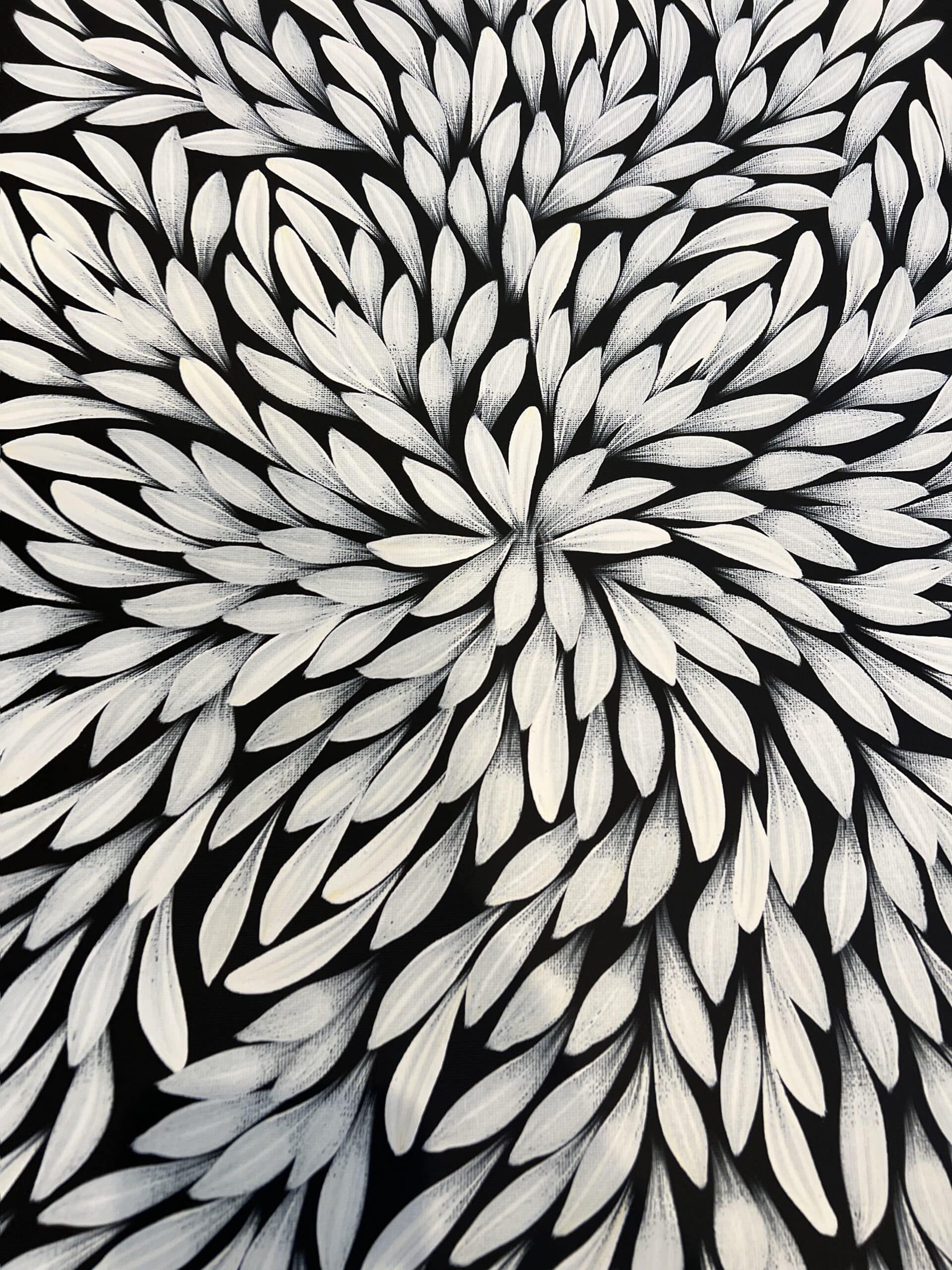 Their works make use of deep, powerful and culturally significant symbolism and tell stories around Emu Dreaming, Water Dreaming, Dingo Dreaming and Bush Medicine Plants, harvested on country.