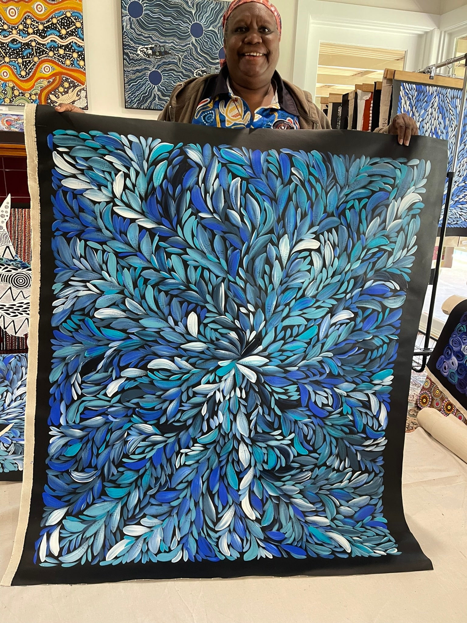 Their works make use of deep, powerful and culturally significant symbolism and tell stories around Emu Dreaming, Water Dreaming, Dingo Dreaming and Bush Medicine Plants, harvested on country.