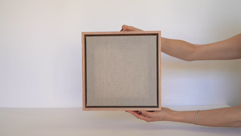 Custom Size Stretched Blank Primed Linen Canvas With Lower Profile Floating Frame (35mm) Natural Oak